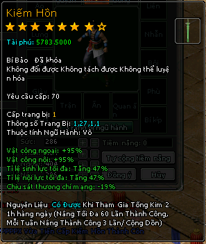 Tỉ lệ sinh lực nội lực tối đa : 95%