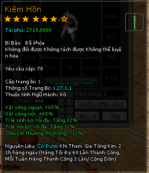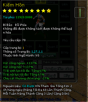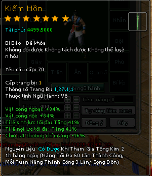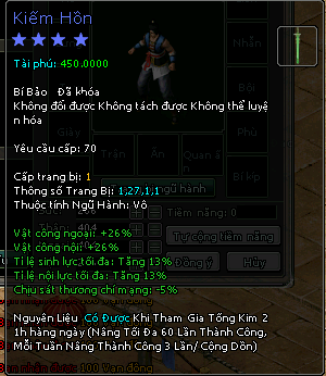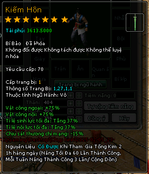 Tỉ lệ sinh lực nội lực tối đa : 70%